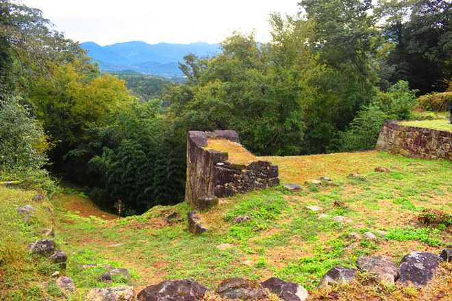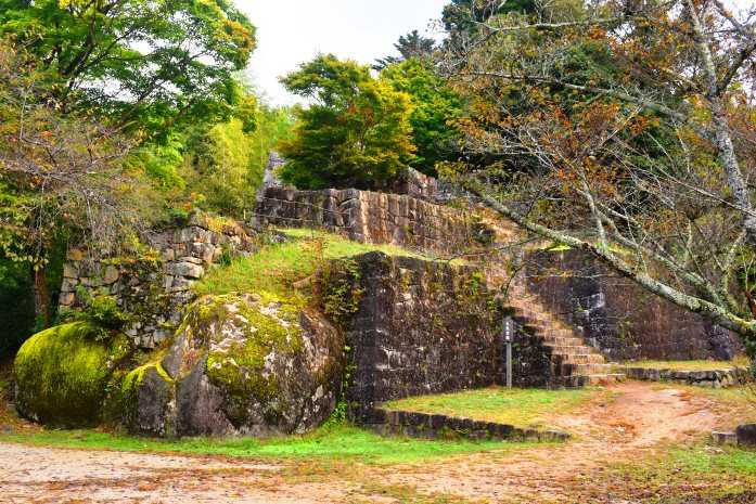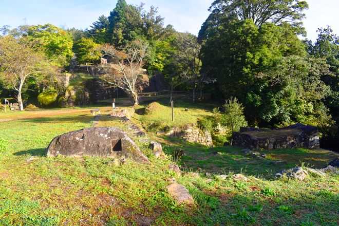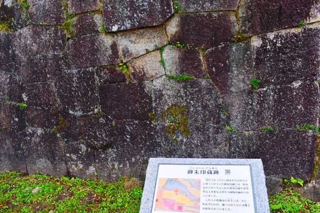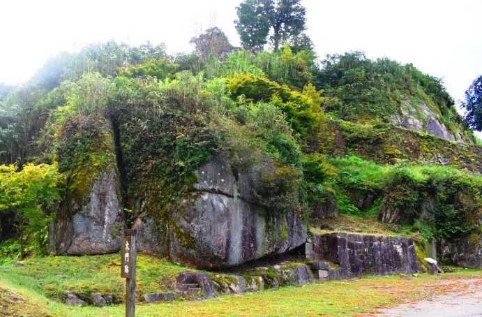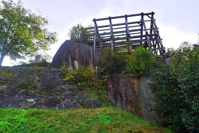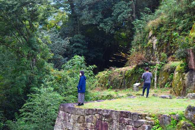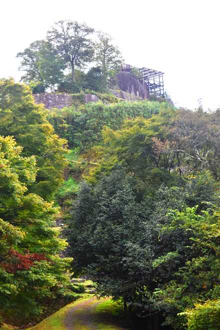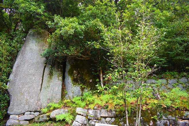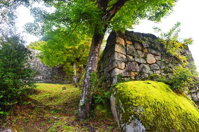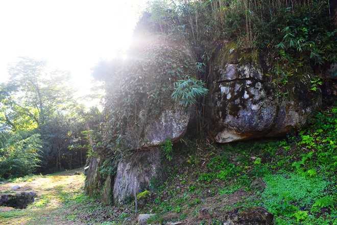 巨岩を取り込んだ石垣が多い。牢屋跡