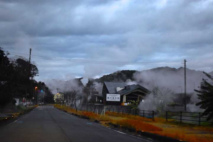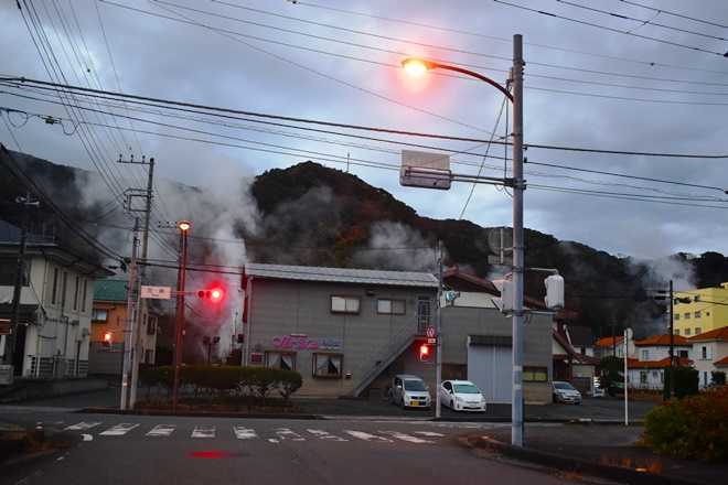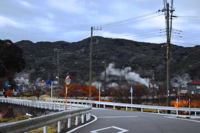 あちこちから立ち上る湯けむりが見える。各旅館では海産物が名物で、特に、伊勢海老が有名なんだって。