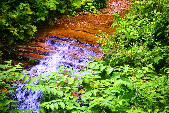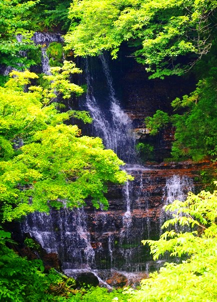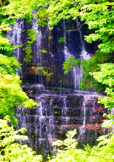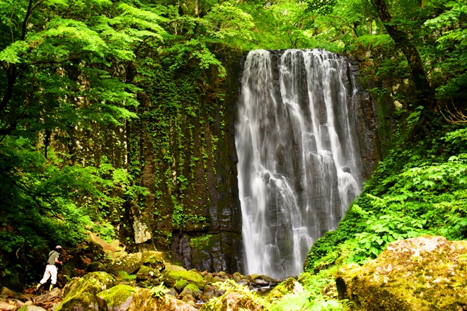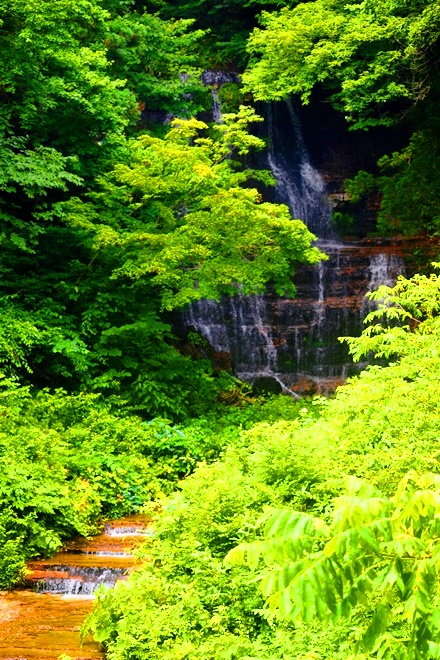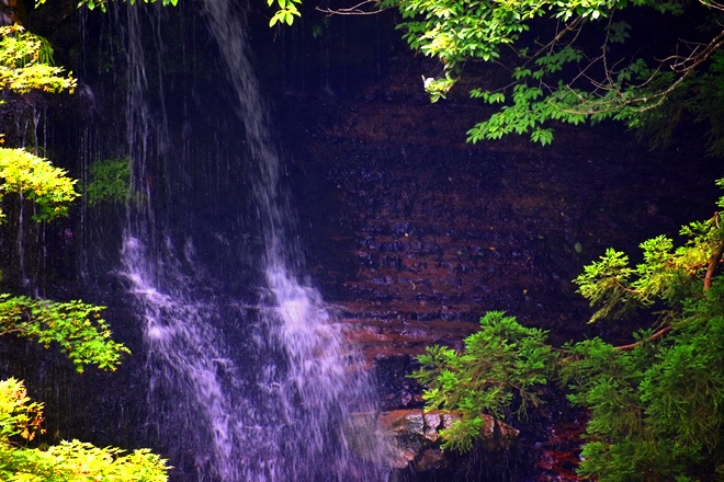 傾斜のある岩の斜面を滑り落ちるような滝、いわゆる滑滝。