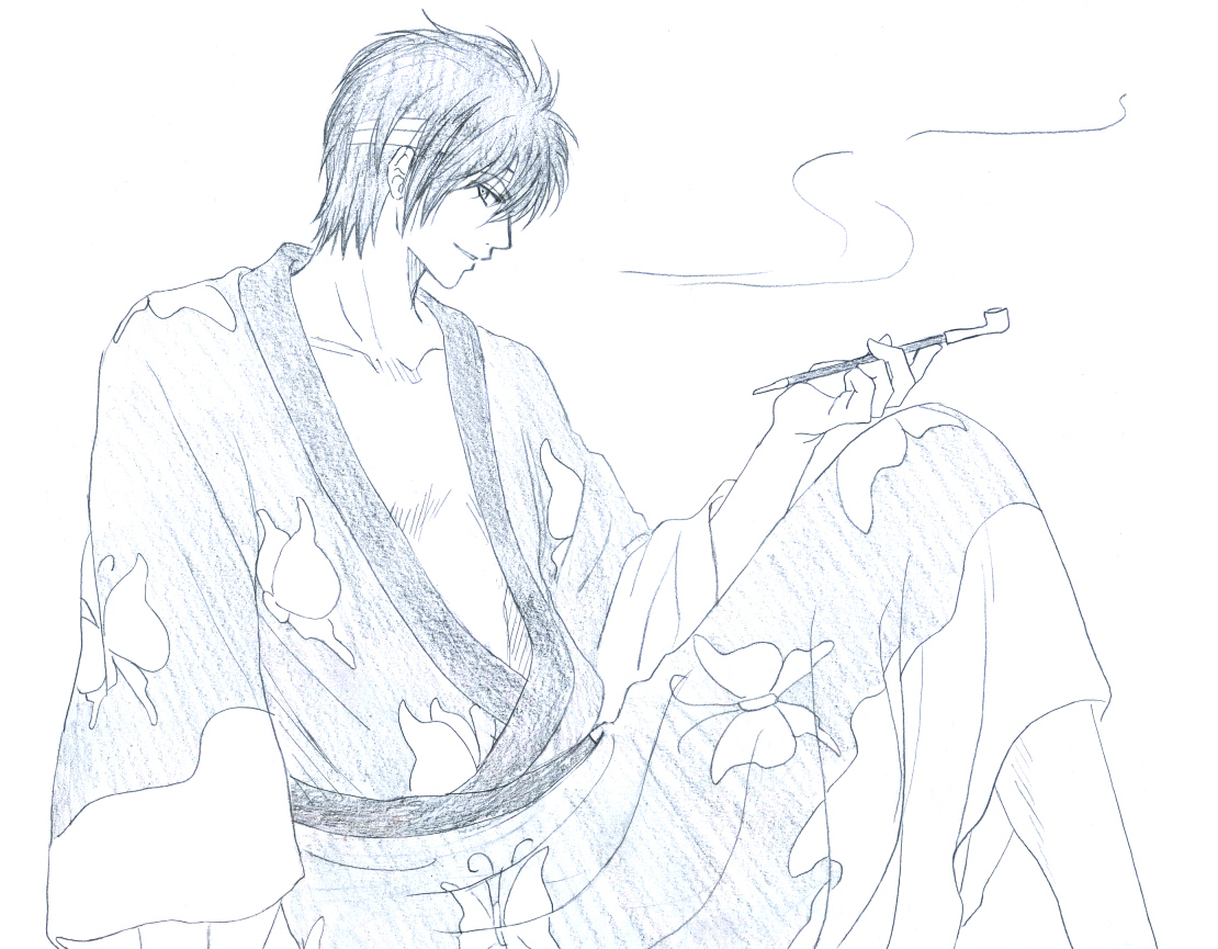 キセルを持ってる手を描きたくて、高杉さんとツッキーのどっちにするか悩んだ結果、窓枠の