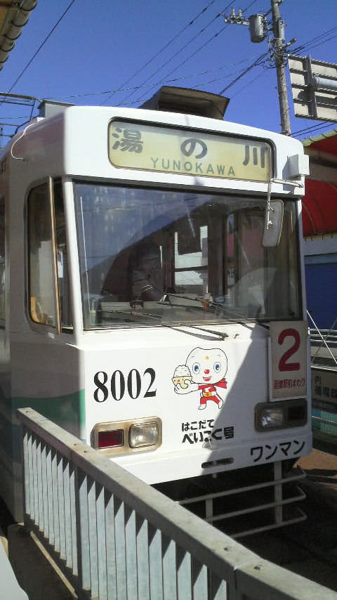 10月07日 函館市電の一日乗車券を利用して完乗を目指そうと乗り出しました 「金の掛かる施設へは行かない!」を合言葉に完乗を目指します 題して 『イカしてる街めぐり函館市電完乗の旅!!』 まずは、谷地頭温泉から湯の川まで8002型べいこく号で一気に行きます 車中、頂いたパンフレットを見ながら途中下車の計画を練ります 車内は、こんな感じ さて、湯の川には大した物は無さそうなのでさっさと折り返します(笑 駒場車庫前 市電の歴史が書かれた看板なんかが有ったり ココには市電の車庫があります 市電って昔馬車だったんだね ハイカラ号に乗りたかったんだけど 今日はお休みだって(T T ココで、何か点検をしていたよ 函館駅前 俺の知ってる函館駅は深夜バスだけの旅の函館駅なので 改装されててバスターミナルも変わっててちょっとがっかり(^^; 駅近くの海光房さんで昼食です(^^ 店の入り口には著名人のサインがびっしり 綾小路きみまろやアントニオ猪木のサインも有りました イカ刺し&蟹の味噌汁食い放題980円 大皿一皿空にしてやりましたwww 新鮮で透明なイカは身が柔らかく甘みもあってとても美味しかったです 味噌汁も蟹の風味が凄い出てて美味しかった(^^ 腹ごなしに青函連絡船摩周丸を見学しようと思ったけれど 入場500円だったので断念(笑 ココからは2001型ハセスト車「やきとり弁当号」に乗ります 十字街 市電を降りてすぐ金森赤レンガ倉庫へやって来ました(^^ 倉庫内は雑貨屋さんや喫茶店などが入っています 「マライカ」があってちょっとビックリ 先日、セントレア店へ行ったばかりなのに(笑 それと、一年中クリスマスなショップが「サンタビレッジ」有りました クリスマスカードが一年中売ってて目の前のポストに入れると 一年中いつ投函してもクリスマスイブに届くらしい 中程に恋人の鐘がありました 目的は「函館オルゴール堂」お店の前には ミリタリーバンドオルガンが有りました(^^ 店内には、かわいいオルゴールがいっぱい\(^-^)/ まぁ、店内撮影禁止なんだけどね(^^; 末広町 駅近くの八幡坂 基坂この中腹ぐらいに旧イタリア領事館があります(^^ 行ってみたら300円だったので断念 でも、近くに俺がいましたwww ペリー提督来航記念碑 旧イギリス領事館の前にあります 「開国してくださぁ~い。私の好きな日本語は"果報は寝て待て"でぇ~す!」ココから函館どっく前までは8006型JACCS車で向かいます まぁ、どっく前にはドックしかないので このまま折り返して十字街まで戻ります 十字街から3002型布目号で谷地頭へ向かいます コレで、全線完乗しました\(*^-^*)/ お疲れ様でしたm(__)m 函館市電ルート