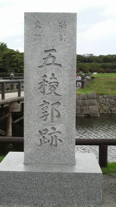 土方歳三ゆかりの地へいくつか行ってきました 五稜郭 日本に二つしかない五芒星形の西洋式城郭 ココ函館市と長野県佐久市にあります 佐久市の方は未完成で今は学校になっています お堀や石垣で五芒星形は残っています 函館市の五稜郭は今はだだっ広い公園です 滑り台とかシーソーとかあります(^^; 春は桜の名所らしいけど・・・今は9月ww って事で、歩いても大した物は無いので 五稜郭タワーに登って見ました 上から見て初めて五稜郭だなと思ったwww でも、大人840円はちとお高い(^^; 一階のタワー入り口を入ると歳さんが迎えてくれます 他にも武田斐三郎や榎本武揚が居ました(^^ 流石に歳さん最後の居城だけあって 新撰組グッズや土方歳三グッズがいっぱいです こんなにいっぱい売ってるのを見たのは京都以来ですwww 中でも「誠」Tシャツが欲しかった 「誠」の文字の後ろに家紋がプリントされているのが2100円 「誠」の文字だけのが1050円でした コレを買えなかったのが函館での心残りとして 今でも、後悔してるくらい(笑 展望台にはミニチュアを使って函館の歴史を解説していました こう言うののを見るといつも思うけど 俺のがディオラマ作るの上手いよwww 高い金出して俺以下の出来ってwww あ!こんな所にも歳さんが! ひひぃ~ん(笑 帰りに五稜郭タワー二階のカフェショップ「Cafe107」で 大沼ビールを頂きました 地ビールコンテストに毎年入賞してるだけあって コクもあってしつこくなく美味しいビールでした(^^ 土方歳三最期の地 最期の地は一本木関門、当時の函館市街の端にあって 旧幕府軍が通行税をとる為に設けた関門でした 新撰組土方歳三が出陣した五稜郭と向かおうととした弁天岬台場の丁度中間にあります 場所は、総合福祉センター前の若松緑地の中にあります 緑地と言っても小さな公園の隅にひっそりと置かれている感じ 駐車場も無いし大きな通り沿いだけど凄く見付け難いので車で行くのは難しいです 俺らも3回ぐらい見過ごしてやっと辿り着きました(^^; 緑地の中に池があって鯉が泳いでいました(^^ 今回のルート