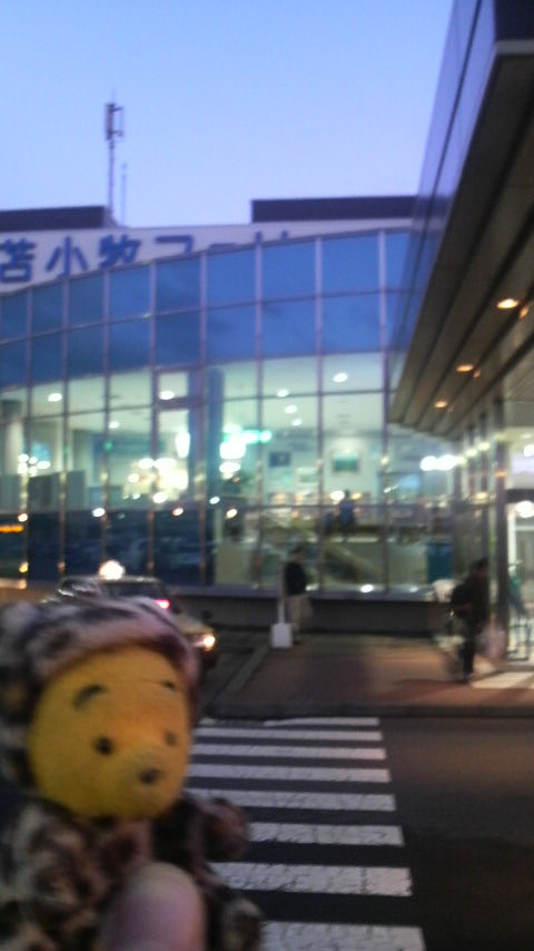 10月11日 いよいよ、函館最後の日です 昨夜は、旦那さんに裏夜景を見に連れて行って貰いました すっごい綺麗だったけど携帯ではコレが限界(^^; 函館駅まで車で送って貰い 駅で「鰊みがき弁当」を買って貰いました(^^ 昼夕食用におにぎりまで頂いて 旦那さんからもシュラフやエアーマットを頂いてしまいました(^^ 感謝感謝の旅立ちで御座いますm(__)m さて、切符を買って いよいよ出発です! 07時26分 函館本線大沼公園行きに乗ります ホームへ行くとキハ40 841が待っていてくれました(^^ まずは、大沼公園駅へ向けて約50分の旅です 08時10分 大沼公園駅に到着です(^^ ココではかわいい駅長さんがお出迎えしてくれました(^^ 乗継まで小一時間ほどあるので ここで食事を取りました(^^ お待ちかねの「鰊みがき弁当」 数の子に鰊だけというシンプルなお弁当だけど みがき鰊が柔らかくて美味しいお弁当でした(^^ 09時08分 函館本線長万部行きに乗ります 写真を撮り忘れたようで何が来たのか解らないんだけど この区間の普通列車はキハ40系気動車だから変わりないかな?? 何故か車内の写真だけ撮ったみたい(^^; ココで、今回の旅のお供をご紹介しましょう CHINA産まれの函館育ち パンサープーさんです♪ 11時31分 長万部駅に到着です(^^ ココでも乗り換え待ち約2時間です コンビニでも行こうと駅員さんに聞いたら 「駅を左に出て1~2km歩くとあるよ」 とか、言われてしまいました(^^; 暇なんで行って見る事に・・・ 途中、俺の店を見付けました\(^-^)/ ま・・・テナント募集中の張り紙がしてあったんですけどね・・・ 駅前の商店街朝早かったのもあるかもしれないが 軒並みシャッターが降りてました(^^; 交通の要所なのにナァ~ココ・・・ 函館本線はココから北上して小樽・札幌を経由して旭川まで延びています そんな、函館本線とはココでお別れ室蘭本線に乗り換えです 13時12分 室蘭本線東室蘭行きに乗ります ここでも肝心な所が映ってないんだナァ~ キハ40形700番台かキハ150形100番台らしいけどどっちだろう?? 長万部ー室蘭間には、名高い小幌駅があります 長いトンネルに挟まれた僅かな隙間にひっそりとある駅 三面を山の斜面に覆われ一面は海 道は無く鉄道と船以外では辿り着けない場所 今は、トンネルの保守点検の為にある駅らしい 降りてみたかったが残念ながら通過 見るだけに留まりました(^^; 14時48分 東室蘭駅に到着です(^^ ココでも乗り換え待ち約1時間の乗り継ぎ待ちです 大きな駅過ぎて逆につまらない感じ(笑 キオスクで色々物色「母恋めし」が欲しかったんだけど売り切れだった(T T ボルタは色々な種類があって面白かった(^^ お金が無いのでこれも我慢・・・ わたれ~るから見た風景 15時32分 室蘭本線苫小牧行きに乗ります やって来たのはクハ711-103これに乗り込みます 白老-沼ノ端間27.8kmの日本一長い直線区間を含むだけあって 車窓は単調な物が続く特筆すべき物が何も無かった気がする(^^; 右手には海・左手には荒野所々に工場と住宅街 そんな景色が続いていきます 16時41分 苫小牧駅に到着です(^^ ココからバスに乗り換えて苫小牧FTを目指します(^^ 今回の移動ルート 持ち物 ゴールデンバット ×10 100円ライター ×2 ビーチサンダル ×1 パジャマ ×2 髭剃り ×2 歯ブラシ ×2 半袖Tシャツ ×3 ズボン ×3 長袖Tシャツ ×1 パンツ ×3 靴下 ×3 リュックサック ポーチ フリースのジャケット ×1 ダウンのベスト ×1 トレーナー ×1 身体を洗うナイロンタオル ×1 シャンプー ×1 リンス ×1 ボディーソープ ×1 NEWアイテム シュラフ ×1 エアーマット ×2 苫小牧ー名古屋のきたかみの切符 ×1 所持金 15000円