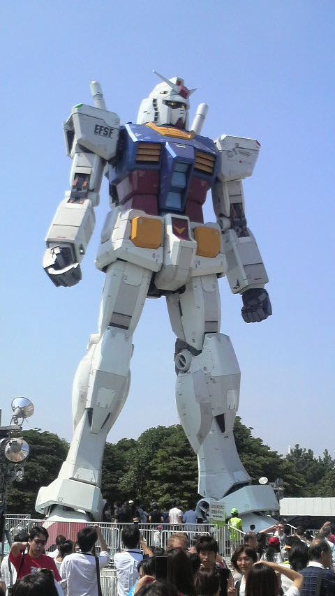 はい!毎度!! 8月20日にお台場でGUNDAM見てきました\(*^o^*)/ お台場滞在3時間 その内、1時間は飯を食っていたので 2時間近くGUNDAM見てましたww お台場王国は入ったレストランの窓から見下ろしてやりましたwww って事で、ゆっくりご鑑賞くださいm(__)m まずは、入り口後姿から GUNDAMの右手を通って正面に回りこみます ババ~~ン!!股の下をくぐって触れるって事で超並んでみましたww 混んでたので少しずつ近付いて行きます(^^ もう、マジかwktk そして、真下から 最後は、背面バックパックです(^^ 会場の公園みたいな所で色々売ってたので見てきました(^^ 最後にパンフ買って貰ったぁ~\(^o^)/