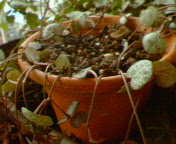 昨夜の未来創造堂でゲスト磯野貴理さんはグリーンを枯らさない魔法の力?をもっているとか。貰った花束のグリーンを水に入れておくだけで根っこが生えてきて新芽が出でくる。葉っぱからも根っこが出ているのもあっておもしろかった。残念なことにドリはよく枯らしてしまう。夏に観葉植物オオバイヌビワが落葉してきたから根が張りすぎていると思って根っこを切って植え替えたらみるみる元気がなくなって棒だけの姿に友はダメだよ!根っこは切ったらダメ!ものすごいショックでした。薔薇の秋苗が届いた時に7号→10号にそのまま植え替えた。1年そのままで良いかと思っていたけど冬の土替えしよう。根を切るのは抵抗があるけど相原さんのHP見ながらガンバル。植え替えしないでいい土ってあるけど来年はこれでやってみようかな。根を切らなくても薔薇が元気なら、そんな良いことないんじゃないかと思う。ハートカズラが長くなりすぎてハートの葉が絡み合ってほどくのが大変でした。よく見ると節に球塊があるので、切って鉢に入れて土をかけた。ようは挿し木ってことかな。グリーンハンドになると良いけど。