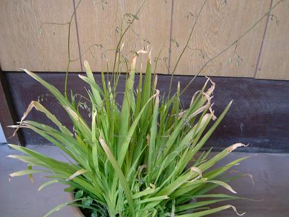 園芸店からメラスが入荷したと連絡がありました。今年はもう無理かもな~と諦めていたので嬉しさ倍増!店内を一通り見てからレジへ。うわぁ~オレンジのベルが鈴なり(笑)メラスフェルラは想像以上に高さがあって素敵。細い茎がからんで道中長いので心配したけど無事に家に着いてホッとしました。葉を見ると、あやめ科なんだと納得。ひらひらと舞そうな雰囲気があって、押し花の作品に動きが出ます。この舞が人気のある理由だと思います。種が出来てきています。
