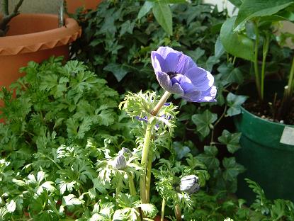 アネモネ。蕾がいっぱいです♪お水が大好きなので切らさないように気をつけています。葉っぱがえり巻きみたい(今、襟巻きって言わないね。笑)カエルを思い出す(みなしごハッチ?けろっこデメタン?笑)カエルだ!と思いつつエレガントなお嬢様っぽい雰囲気。お嬢様エレガント~(スチュワーデス物語。笑)昭和満載。昭和バンザーイ。