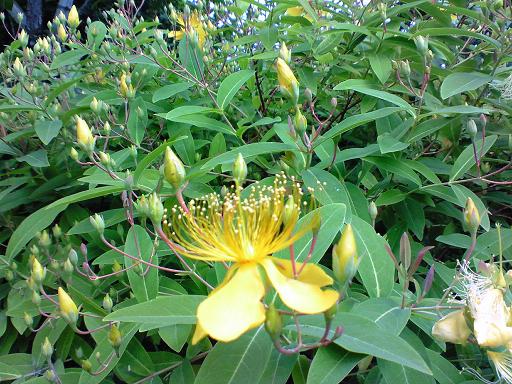 ビヨウヤナギ庭というか畑を覗いたら黄色い雄しべが見えました。あ~知ってる~。な、なんて名前だったかな?Natural plantさんにまたお世話になりました。ビヨウヤナギに似た黄色の花が歩道の植え込みに咲いています。キンシバイ(金糸梅)っていうのね~。可愛い花なのさ。ゼラニウム毎年いっぱい花をつける優等生。花がら摘み取らないとデロデロ~。葉っぱの匂いが好きじゃないけど可愛いお花です。母親に「花がかわいそう」と言われながらも、負けじとカット。リンドウザキ カンパニュラかな~アジサイハゼラン3時ころから咲く可愛い小さなお花です。お気に入り♪カラー毎年咲きます。ステキ【野菜たち その2】坊ちゃんかぼちゃトウガラシ☆型で可愛いお花。無理やり上を向いてもらいました。オクラ初めて見たオクラの花って可愛い。母親もオクラは初めて。葉っぱが病気でアブラ虫が・・・前途多難。ミョウガダケ~キタアカリこぼれ芋(笑)のおジャガ発見。ゴーヤ親父が好んで食べます。苗を買わなくてもそこらじゅうゴーヤ祭りですが。金時ささぎ母親「お赤飯に入ってるお豆よ」・・・ささげじゅないのか?大豆アシタバモロヘイヤネバネバ大好き!大きくなるのが楽しみ♪キュウリキュウリを買っていったら母親「もう家の食べられるのに」花ばっかり見てました。インゲン(平莢)も収穫していました。