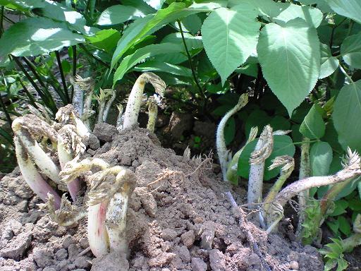 カモミールティー鎮静作用、リラックス作用、利尿作用、月経・更年期の抗うつ作用、消化不良、消炎作用保湿作用、発汗作用、花粉症、軽度の胃潰瘍、大腸炎、下痢などの改善、肌を美しくする喘息を鎮める、初期の風邪、胃炎、吐き気、にきび、湿疹、かゆみの改善などに有効です。って。うわぁ~医者いらず味は好き嫌いがあるかもしれないかな。母親「カモミール!新聞に載ってたわよ!美容にも良いってテレビでもやってたわ」乾燥させよう♪前から体に良いって言ってるのに、テレビの力はすごいよね~。あまりにも繁殖してお隣さんにも種が飛んで隣との境界線にカラカラのカモミールが置いてありました。こっちに飛んできて困る!ってことですね( ̄□ ̄;)お隣さんの花も農村の畑で咲いてます。種は飛ぶんだよ~!前向きに?半分位抜きました。【野菜 その3】トトロの傘のイモの葉っぱって見分けがつかないイモはイモ。お皿に乗せて観賞用にしていたのはヤツガシラかな。 オクラはジュリーさん“オクラは難しい、苗で買うと育たないから種植えたよ”ほんとうにその通り。種からも植えていました。夏に食べられそうかな(〃⌒ー⌒)母親「エシャレット、キヨちゃんに貰ったの。あっちが“らっきょう”」らきょうの若採りがエシャレット。エシャレット=らっきょうそれとな~く言ってみよ↓↓↓↓ずいずい~と下へ↓↓↓↓サトイモアカメイモヤツガシラナガイモ落花生小豆ゴマタマネギ枝豆オクラエシャレットミント