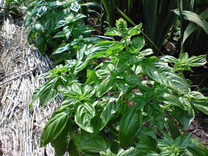 7/9にバジルの苗を買って母親と植えました。虫さんに好かれて育ちが悪かったけど↓こんなに大きく育ちました。母親が枯れないように毎日お水をあげてくれたおかげです。バジルの収穫。トマトサラダで食べました。新鮮なバジルは香りが強いので苦味もあります。お店っぽくカプレーゼやジェノヴェーゼソース作りたいです。お菓子の上の飾りのミントに似ています。和名のハッカが似合うミント。ハッカの花はシジミチョウ、セセリチョウが好きみたいです。ヤマトシジミハーブはどんどん増えるし香りがイイです。先日お邪魔したノブコ邸の庭にも沢山のハーブをプランターで育てていました。グリーンの庭もイイな~と。お花も咲くけどさ(^^)