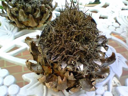 巷で話題の脳内メーカードリの頭の中【4/5遊 1/5食】欲求をみたすべく、ノブコさん宅に遊びに行ってきたした。アキコさんが「新百合のケーキ屋さんでお土産を~」新百合ヶ丘の駅で待ち合わせをしました。アキ子さん「ケーキ屋さん休みみたい」ショック。保冷バッグまで用意して買う気(食べる気)満々だったのになノブコさん宅にアーティチョークがありました。種から育てて3年。茹でて食べたそうです。↓ゴミの日だから捨てようかと思ったけど、種をとるのかと思い直してセーフ。ん~このツンツンしているのが種か・・・夢の島熱帯植物館5月のアーティチョーク。 ノブコさんはお友達と2人でフリーマーケット出店しています。「若い子の物がないのよ。ドリちゃん何かない?オマケとか」オマケありますよ~。レゴとオマケ、手作りビーズアクセサリー、たまごっち(懐かしい)など。「客層がどりちゃんよりちょっと上なのよね。70代位よ」え~~ちょっとって!あぁ~ドリ位~70才位までか。ノブコさんのお友達が孫のオモチャを出品していたらそこへ孫ちゃんが来て、慌てて隠したらしい。そりゃ、慌てるわ。くくくぅ~ (o^∀^o)ノブコさん宅でランチカレーでいいかな。簡単だからってっ前菜が手間かかってそう。カレーもハーブが入っていて美味しかったです。おやつは桃のシブーストを買いました(写真撮らなかった)ノブコさんが用意してくれたお菓子。なにげなくアイビーがイイね。 スイカ、紅茶、コーヒー、アイスをご馳走になりました。お腹いっぱい。楽しい6時間でした。