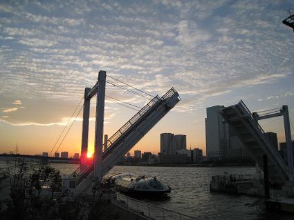 ららぽーとにてヒミコ浅草~お台場間を運航しています。以前、三人娘で乗船して浅草まで行きました。船内には星野鉄郎、メーテル、車掌さんのパネルがあります。ビルの間から見える富士山の裾野に沈んでいくような夕日が眩しい。日没後の夕焼け~小焼け~♪