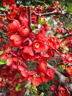 農村では朱赤の木瓜が満開です。この朱赤で小鳥を誘って花粉を運ばせるそうです。雄花しかないので実がつきません。冬でも、ぽつぽつと咲いていて親父曰、だからボケなんだって~ね昨年、親父が植木市で購入した盆栽ボケは別名“放春花”というそうです。まんまるな蕾がかわゆいね。今年も盆栽が仲間入りひらりと大きめなお花です。 地植えでのびのび育っている複色の木瓜まだ蕾ばかりですが一輪咲いていました(後ろは寒椿です)雌しべがあります。昨年春の写真ですサーモンピンクなど淡い色合いがかわいいです6月実が大きくなってきました以前、三人娘が“木瓜酒は美酒”と話していたのを思い出して昨年の秋10月に収穫しました。実は堅くカリンに似ています。2009/10/15 2010/03/19(5ヵ月後)香りは、お酒の香りが強いです。琥珀色になるまで寝てもらいましょう。お酒苦手だけど健康にイイ薬酒なので飲んでみたいし美味しくなったら三人娘にお裾分けしたいな。ちょいとボケ話雨だよ!母~洗濯物取り込まなくちゃ外に出ると親父が植木に水やりしていましたとさちゃんちゃんおまけ秋に街のベンチで!木瓜の実かな