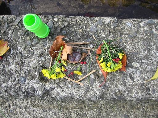 天気もよく、お外で遊ぶには最高のお天気でした。いろいろな遊具で遊んだけど、最後はなぜかサワガニのお葬式ごっこ?サワガニの死骸を花や草できれいに飾りながら遊んでいました。映画『禁じられた遊び』のワンシーンを思わせる光景でした。(とても古い映画ですが、すごく子供心をとらえている映画だと思います。ヨーロッパ映画には子供心を鋭く描いているものが多く、私の大好きな映画のひとつです。ちなみに一番好きな映画はスペイン映画の『みつばちのささやき』という映画で、ある一人の少女の日常を少女の目を通して描いたものです。)子ども達の心は、戦争中もそして平和な時もいつもピュアなんだといつも遊びを通じて感じています。そんなピュアな心を大切に育てて生きたい!と思います。今日も元気いっぱい遊んでいましたよ!