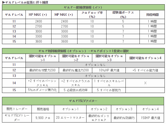 1. ギルドレベルの拡張(Lv10 - > Lv15に拡張)