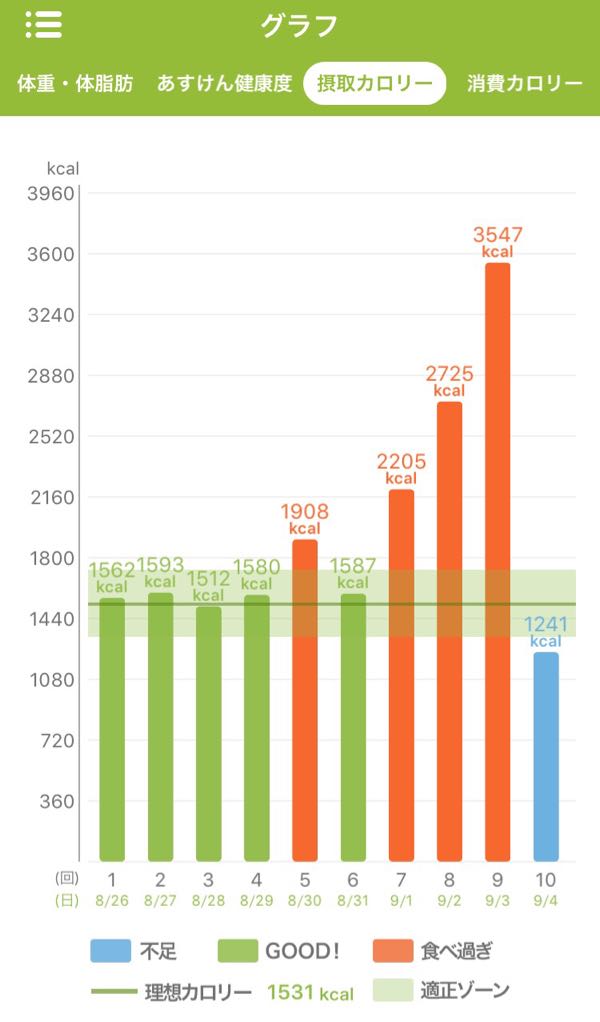 9/12(月)49.6kg、13(火)49.3kg 自分の燃焼効率の悪さをしっかり見つめていかないと! カロリー収支グラフ 私燃費がいいんです。25%OFFを立証中 もちろん、最優先は「体調」 無理に急いで減らそうとすると確実に だるい→爆食のループ そのためにも、毎日チリのように貯めた(ハズ)のマイナスカロリーをちゃんと把握すべきかなあ? 補正をかけたカロリー収支を5月末から積算したら… プラス189kcal(笑) 見事な横ばい。 見事な現状維持( ;´Д`) マイナス貯金しなければ! 現在、記録初日比でマイナス1kg弱となっていますが、これは その直前のドカ食いの影響もあったと評価。 脂との戦い、真のダイエットは49.5kgから始まるような気がしています。 チリ程度で調整しないと体調がおよろしくないのは何度も実証済み。 一日あたりマイナス150kcalで50日~60日でマイナス7500kcalを貯めて 1kgマイナス\(^o^)/ を実証してみたいんです。 3ケ月~4ヶ月後には・・・年内には47kg達成したい。 そのためにもめんどくさいけどちゃんとどれだけマイナスを貯められているのかい ないのかを毎日チェックしないとだめだなぁ。 7月末ごろに上手く行ってた頃には毎日差引して さらに朝夕体重計って さらに歩いた距離と消費カロリーも累計してたっけ・・・ 時間がなくてめんどくさくてやめちゃったんだった。 やっぱちゃんとみたほうがいいな。 いまはなぁ・・・こうやって落ち着いて考えられるんだけどPMSの周期がやってくると ほんとにどうでもよくなっちゃうからな。 どうやってその時期を落ち着いて乗り越えるかだなぁ。 たとえ減らなくてもあほみたいに食べないことだ・・・飲まないことだ。 でもやっちゃうんだ~ 自信ないよ(涙) でもなんとかやりきろう とにかくダイエット終わりたいです(涙) もう何度目の仕切り直しかわからんし 毎月毎月仕切り直してるし・・・ あほだなぁ。 総消費カロリーから自己流カロリー収支補正値 286kcalを引いて 9/12 -145kcal 9/13 -153kcal 【毎日の食事記録はあすけんにユーザー名TTRで記録中】なんちゃって糖質制限でなんとか50kgまで減量できたのですが、あと3キロがどうにもならない( ;´Д`)60kg級超丈夫な胃袋にさいなまれ七転八倒しながら47kgを目指していますm(_ _)mランキングに参加していますm(_ _)mにほんブログ村「カロリー収支をマイナスに」を毎日の目標にしています。消費カロリーはこちらで管理。摂取カロリーはあすけんで管理しています。EPSONさんとあすけん…提携してくれないかなあ。同期できたら楽なんだけどな。PS-600B【税込】 エプソン ウェアラブル脈拍計(エナジャイズドブラック) EPSON PULSENSE 液晶表示タイプ [PS600B]【返品種別A】【送料無料】【RCP】2014年の夏、この本に出会わなければ一生60kgBMI25だったに違いない。炭水化物が人類を滅ぼす [ 夏井睦 ]2014年最大62kg2014年7月糖質制限開始58kg最低体重記録 2015/1/31 48.05kg2014/12/31 49.05kg2015/12/31 52.40kg2016/2/21私流ナンチャッテ糖質制限ダイエット日々修正しすぎて最近はカロリー収支を重視しています。糖質制限緩めまくりです。