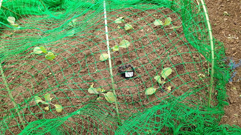 折角植えた野菜の苗を食い荒らされては堪ったものでないので、雑っとした形状ではあるが網をかぶせた