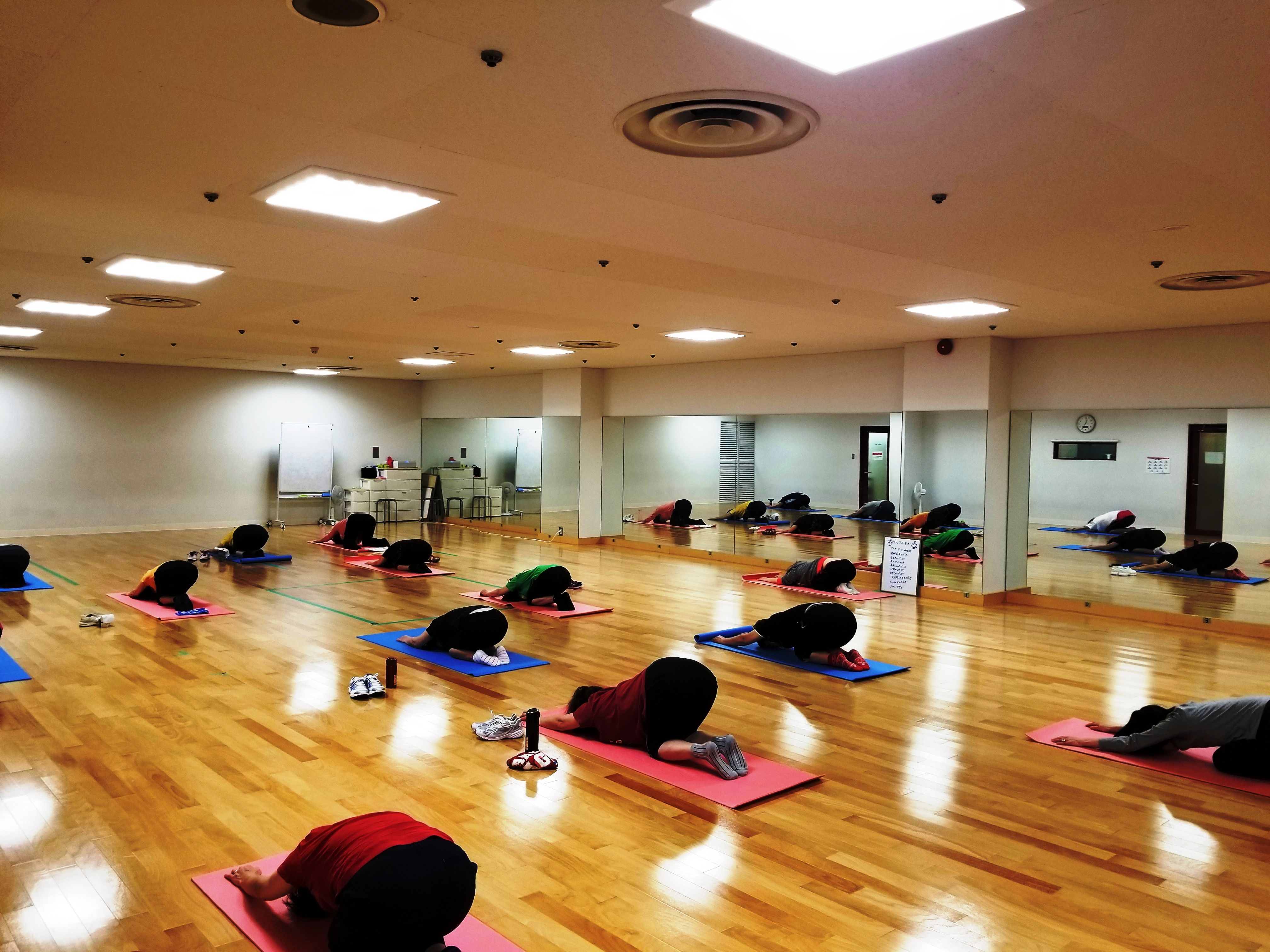 こんにちはインストラクターのKANOです本日のスタジオプログラムはディープストレッチでしたゆっくり、リラックスしてストレッチを行いましたよ首から腕、背中、腰、足の先まで意識して、呼吸を止めずにストレッチするのがポイントですゆったりとした曲に合わせてたっぷりストレッチ普段伸ばさないところまで伸ばしたので、お風呂上りなど、しっかりマッサージしてあげてくださいね明日のスタジオプログラムは、、11:00~まわせ!です皆さんのお越しをお待ちしております