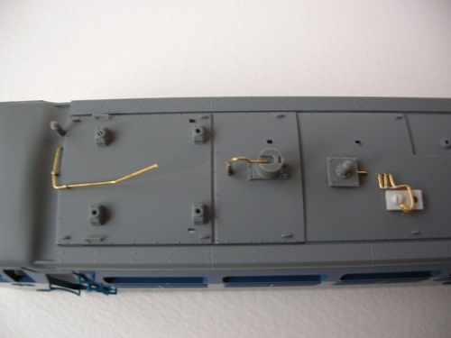 ご無沙汰しました。今回はJR西日本の広島工場のつもりで、作業風景をご紹介いたします。まずは、EF66JR貨物新更新車が入場し、避雷器の配管を0.3mm線と0.2mmの板を半田付して作製し、現在取付中です。次に、スカートのエアーホースをトミックスの説明書通りに取付け。そして、ホイッスルを塗装。作業一段落した工場内の様子。塗装を控え、色見本を参考にします。工場内を別角度から見てみます。検査中のEF66-10の屋根。そして、最後に工場内の風景。検査の視察、お疲れ様でした。これからも、よろしくお願い致します。にほんブログ村