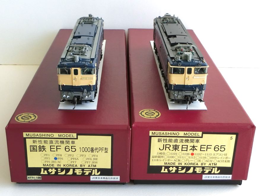 ムサシノモデルの左からEF65-1100号機国鉄、EF65-1115号機JR東日本現行仕様。