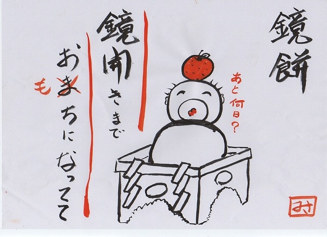 鏡開きは、11日です。幼いころ、大人たちが正月用のしめ縄飾りをかたずけた。おそなえ餅は取り残されていた。このお餅は、いつまでおくのかと。祖母に尋ねたものだ。みかんは食べてもいいと許され、喜んで食べた。しかし 肝心のお餅が、ヒビが入りなんと毛が生えている。毛が生えてきてると祖母に訴えると。一言。 生きてるから毛も生えるって・・・、ことで。ふ~んと幼い頭の中で納得したが隣のじいちゃんは生きていて元気なのに毛が消えていくのはなぜなのか尋ねられなかった。超えてはならない暗黙の領域なのかと幼心にも感じ取っていたのかと思い出し笑いをする。我が家のお餅にはまだ毛が生えていないようだ。あと、一週間か・・・ ↑↑↑ みさちゃんに応援クリックを