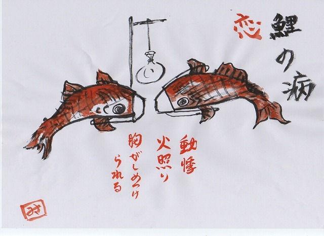 鯉の病 ?恋の病のまちがいでは!!いえいえ鯉の病・・・鯉の街なのですが、昨年のこと、公園の池や養魚場・・・はかない鯉の命が散りました。あ~あ。ホントに恋(鯉)^^ってはかないのね。恋か、かぜかは早めに診断されることです。両方とも流行っています。気をつけて~。 ↑↑↑ みさちゃんに応援クリックを