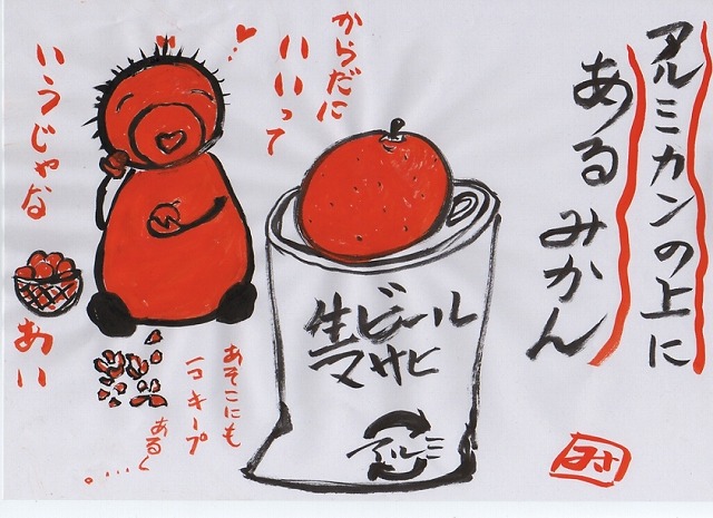 私は、みかん大好き人間。みかんがないと生きられない。まだ、あそこにあるはずだ。アルミ缶の上にあるみかん?体までみかん色!!。 ↑↑↑ みさちゃんに応援クリックを龍5777さん のリクエストにお答えして!! 「干し柿を 食して思う 古里の冬」