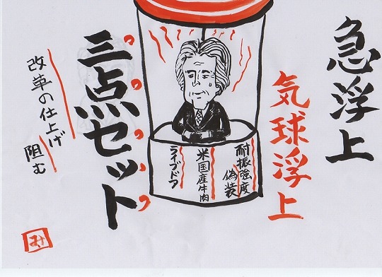 急浮上?改革総仕上げしたいところなのに阻む 3点セット。冷静では、いられない。上気が、見えるようです。3点セット乗せた気球は、気球浮上・・・。落下して欲しくないものですね。よかったら、ぽちっと、おねがいします。 ↑↑↑ みさちゃんに応援クリックを