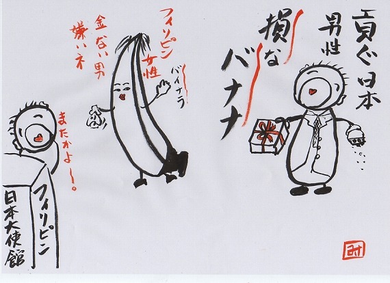 日本人男性が貢フィリッピン女性を、追いかけて・・・。お金がなくなって、男性方が大使館に逃げ込む事件、急増だって・・・?そんな、新聞記事見つけました。日本女性は、魅力ないのかなあ・・・そんな、バナナ・・・。 よかったら、ぽちっと、おねがいします。 ↑↑↑ みさちゃんに応援クリックを