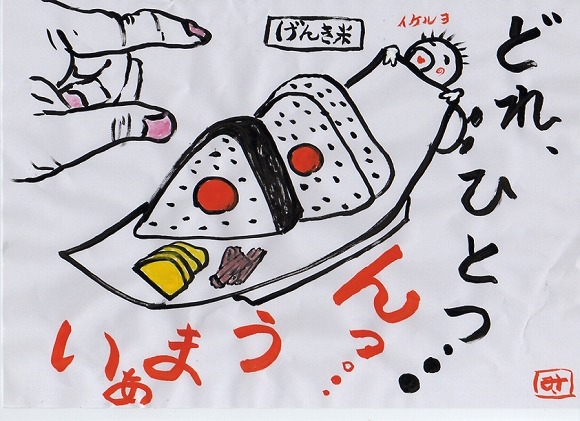 クリックして見て(みさちゃんからのメッセージ)我が家の栗の助のポーズおじょうず・おじょうず(笑い)子供のころ、学校から帰ると、おやつはみそをつけたおにぎりだった。にぎりめし つぐってだぞ・・・。ばっぱちゃんの手ぬぐい姿が迎えてくれた。暖かいのはもちろん旨い。けど、表面が かすかに乾き始めたおにぎり は絶品!んー。うまい。 朝、晩のおかず付きはあたりまえ。特に米がうまいとかは考なしに ・・・食べている。おにぎりだけで、充分旨いと感じるのは、邪魔をする味がないからか?米粒一つ一つの甘みと弾力が、癖になる。げんきになれる。さめてからの味が勝負!! 最高だ。!!叫びたくなるよ!!。おにぎり大好きって「お米」の美味しさは、おにぎりが一番。食べて見て。 ↑↑↑ みさちゃんに応援クリックを