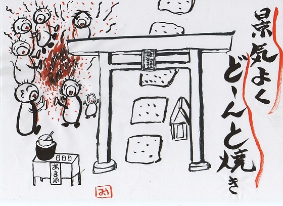 どんと焼き元日(1月1日)から1月7日までを大正月、それから1月15日までを小正月 (大正月の間に仕事が多い女性を労い、女正月という地方もあります。) といい、この小正月の間にお飾りや門松を焚き上げ、その年の健康を願う どんと焼き(どんど焼きという人もいるようです。)が各地で行われます。 ↑↑↑ みさちゃんに応援クリックを