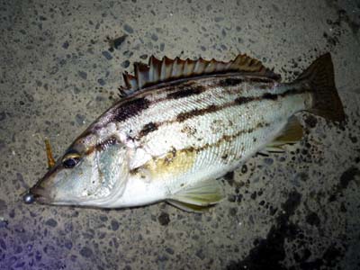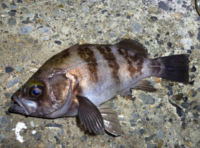 みなさん おはようございます。昨日は仕事が暇で体調も良く、天気予報で夜は風が治まるということでしたので久しぶりに行ってきました。昨年6月ごろから湾奥に行くときはHが一緒だったのですがこの日は彼忙しいようで欠席(~~;)久しぶりに単独釣行!さてどのように楽しもうかな~?まずはメバルを狙ってみよう!現地に着くと予報よりもちょいと強い向かい風が・・・(><)寒~いでも潮位が高くて魚は着いていそう?開始すると1投目に25cmほどのセイゴがヒット!あれれ、ここでこの魚は珍しいな~そしてその数投後にもまたセイゴが・・・今日はここはセイゴが溜まってるの?ではもう少し先のポイントをやってみようそして開始するとすぐに結果が! 本命ゲット♪そして同じパターンで探っていくとポツポツと釣れます!サイズは20~24cm。ある程度やってなんとか6匹キャッチして次のポイントに・・・先ほどのポイントは向かい風でめちゃ釣りずらかったですが今度のポイントは横からの風でさらにやりずらい(><)ここでは軽いジグヘッドでは何をやってるかわからないのでちょっとウェイトアップ!すると最近では珍しいムラソイがヒット! 久しぶりだね~♪続けてやると同じサイズのムラソイを追加!でもその後はアタリもなく、ほんとやりずらかったのでここは大きく移動・・・今度のポイントは追い風になるポイント。後ろからなのでルアーも飛ぶし、一番は顔が寒くない(爆)そしてここではいつものようにカサゴを狙います。手前のポイントから探るとすぐにアタリが・・・ やっぱり居たね(^^*)それから徐々に沖の方を探っていくとポツポツと釣れます。ジグヘッドをかなり重くして、超大遠投で探ると良型が・・・しかも活性がいいのか色が違います。そして7匹釣ったところで根掛かりしてラインブレイク(><)。時間を見ると予定時間を15分ほど過ぎていて・・・もう充分楽しめたから終わりにしよう!結局、PM9:15~11:30まで釣りをして、メバル6匹、カサゴ7匹、ムラソイ2匹、チビシーバス2匹でした。久しぶりにやりましたがやっぱロックフィッシュゲームは楽しいな~と(^-^)/♪次回はもう少し風のない日を選んで行こうと思います。それでは~