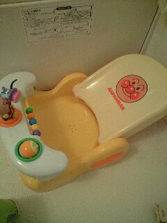 昨日初めて使いました。ゆう君はまだ2ヶ月半ば。このバスチェアは3ヶ月からと書いてありましたが首がしっかりしているので使ってみることに。