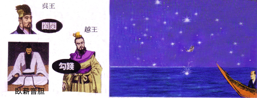 あまくさ なだ はく らいさんよう 天草洋に泊す 頼山陽 作くも か やま か ご か えつ すいてん ほうふつ せいいっぱつ雲耶 山耶 呉耶 越か。 水天 髣髴 青一髪。ばんり ふね はく あまくさ なだ けむり ほうそう よこ ひ ようや ぼっ万里舟 を泊す天草の洋。 煙 は篷窓 に横たわって日 漸く 没す。べっけん たいぎょ はかん おど たいはく ふね あ めい つき に瞥見 す大魚の波間に躍るを。太白 船に当たって明 月に似たり。 呉か越かは臥薪嘗胆など春秋時代の呉越の戦いがあった国名を指します。 右は想像の絵を作っています。 詩文説明遥か彼方に見えるのは雲であろうか、山であろうか、また呉の国であろうか、海と空との境の水平線は一筋の髪毛をピーンと一直線に張ったように見える。自分は今、京都から万里も遠く離れた天草灘に来て、船泊まりすることにしたのだが、靄が何処からともなく、舟の窓辺に湧き出て海面を流れていく。海もようやく凪ぎ、陽も西の彼方に沈みつつある。すべて夕日に染まる時、大きな魚が波に躍り跳ねるのが見えた、舟の舳先の正面の星が月のような明るさを見せて、暮れゆく空に輝いている。 天草洋の頼山陽漢詩碑より前の風景を写しましたが視界が広く三方に分けて写しております。 これは上の写真三枚を合わせました。陸地は塗り潰しました。漢詩の碑が此処にあるところを見ると頼山陽はここの場所から海を眺め作詩したのではないかと思われます。 ●再び訪ねた天草本渡にある山陽公園。 と少し先に富岡城が有ります。右端は富岡城入口にある鈴木重成像 頼山陽公園内に天草灘に面して2個の天草洋に泊すの石碑ある。右端は以前に吟友達と同じ場所で撮った写真です。(平仄・韻は故意に、面白く作られたようです。人口に膾炙した有名な詩です) 作者 頼山陽(1780~1832)江戸時代後期の儒者。名は襄(のぼる)、字は子成。山陽の他に三十六峰外史と号した。芸州(広島竹原)の人。父は惟完(号 春水)といい、安芸藩の儒者。山陽は長男。大阪の江戸堀に生まれ、広島で育った。叔父杏坪について読書を学び、詩を作り、父の友人柴野律山を驚倒させた程の詩文の天才であった。18歳にて昌平校に学び20歳、家出し、京都に行くも脱藩の罪で幽閉され、「日本外史」の稿成る。以後菅茶山の廉塾の学頭となる。篠崎三島・小竹親子を訪ねる。京都鴨川に住居し、山紫水明処と名付けた。53歳没。「日本外史」「日本政記」「春秋講義」「山陽詩鈔」「山陽遺稿」「日本楽府」「山陽詩集」「山陽文集」などが有る。
