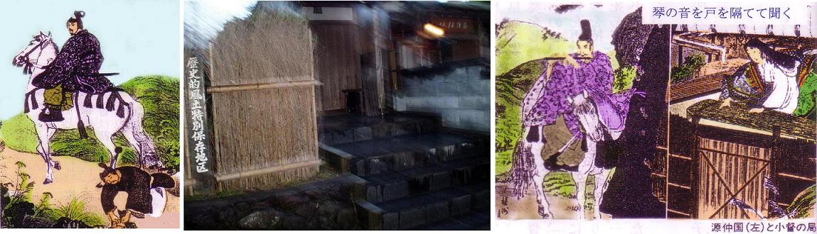 こ ごう つぼね まつぐちげつじょう 小督の局 松口月城 つき きよ さがの ほと 月は清し嵯峨野の辺り。 き え こと ね と へだ つと 聴き得たり琴の音の戸を隔てて伝うるを。 むげん あいしゅう むげん おも 無限の哀愁 無限の想い。 ひ か いっきょく ひと あわ 非歌 一曲 人をして憐れましむ。 詩文説明嵯峨野の清らかな満月の夕べ、、(高倉天皇が寵愛する小督が密かに中宮より姿を消し、悲しみに暮れていたが、ある日弾正大弼仲国に捜索を頼む)高倉天皇から命を受けた仲国は、小督を探し求め、京都嵐山嵯峨野の辺りにやって来ると、何処からともなく、聞き覚えのある素晴らしい想夫恋の琴の音が流れてきた。その悲歌は、帝を想い奏でる想夫恋の曲であった。その琴の音は、知る者の胸に響き、哀愁を帯びる切々なものであった。高倉天皇を偲んで奏でる小督の想夫恋の曲、胸中如何ばかりの思いであったことでしょう。 左右は仲国が小督を探しまわる絵。 中央は嵯峨野にある歴史的風土特別保存地区と書いてある建物ですが、小督と関係あるかどうか解りませんが、それらしき感じを受けましたので、写真撮影してきました。天竜寺近く小督が隠棲していたと伝えられるところで、小督塚がありました。 仲国が嵯峨野辺りを探し廻ったといわれる周辺の風景、手前に小倉百人一首の歌碑ありました、此処は、小倉山の麓なので至る所に百人一首歌碑があります。また、往年の時代劇大スター大河内伝次郎の立派な山荘がありました。 嵐山渡月橋周辺 右写真は渡月橋袂にある「琴聞き橋」の石碑横に歌が刻まれてあります。 小督局父は桜町中納言といわれた藤原成範。生没年は不詳。容姿美しく、殿上中第一の美女とされ、琴の名手であった。小督は令泉大納言隆房が少将であった頃に恋しあって、隆房の妻になっていたのを高倉天皇が寵愛しておられた葵の前が亡くなり、非常に悲しんでおられたので中宮職の意向で、小督を天皇の御慰め役に差し上げることになり、小督は中宮へ上った。高倉天皇は非常に喜ばれ、小督を深く寵愛された。高倉天皇の正式な中宮は、平清盛の娘の建礼門徳子である。小督が天皇の側に上がるようになってからは徳子が疎んぜられるようになった。清盛はそれを知り、小督に辛く当たる。(清盛は権勢を握る為、天皇の外戚となり娘徳子の皇子誕生を待ち望んでいたので、天皇の愛情が小督に傾いていったのを恐れた。高倉天皇は小督と引き離された翌年に亡くなっています)小督は自分の身に迫る危険よりも、天皇に危険が及ぶのを恐れ、そっと行方をくらましてしまった。それを知って天皇の嘆きはひとしおであったが、風の便りに小督が嵯峨野付近に隠れ住んでいると聞き、弾正大弼仲国に命じて、文を托し、小督を探し宮中へ再び連れて来るように遣わされた。仲国は馬を拝領して満月の灯りを頼りに嵯峨野の辺りを探しまわった。折しも草深い片折戸の向こうから、あの聞き覚えのある想夫恋の琴の音が聞こえてきた。たしかに小督に違いないと案内を乞い対面し、天皇の深いお嘆きを伝える。小督は感激の涙にくれる。小督は宮中に戻ることは天皇の為には良くないと断り、笛の名手だった仲国の笛の音と小督の琴とで、涙ながらに合唱し、また舞い、ひとときを慰めて仲国は一人で帰ったが、天皇はどうしても諦め得ず、後日再び宮中に迎え入れられた。清盛は怒って、小督を捕らえ、清閑寺に押し込め、髪を持って引きずり回したり酷い仕打ちをし、尼にして追い出してしまう。(小督のその後は、はっきり分りません、大堰川に身を投げたとか九州へ落ちていって死んだとか、嵯峨野で一生過ごしたとか。「平家物語」小督塚は嵐山にあり、小督の住んでいた家の跡が有り、高倉天皇の御陵の側にも小督の墓といわれる塔が有る。(尼に身をやつし知人を頼りに九州大宰府を経て、現在の福岡県田川市香春町まで来た頃大雨に遭い伊田川を渡る途中激流に呑まれて成道寺の住職が助けたが、旅の疲れと重なり、病に付き、看護空しく亡くなったといわれ福岡県田川市白鳥町の成道寺に鎌倉から南北朝時代のものと思われるもので、田川市の指定有形文化財として小督の七重供養塔が有ります) 高倉天皇〈11611~1181〉 第80代天皇。後白河天皇第七皇子。母は建春門院滋子。名は憲仁。清盛と後白河天皇との反目の間に苦しみ安徳天皇に譲位後、名目的ながら院政を行った。陵墓は京都清閑寺陵。小督の供養塔もある。 作者松口月城 明治20年~昭和56年(1887~1981)福岡市安徳村今光、藤又四郎の4男として生る。本名榮太。号は、月城・筑紫山人。14歳で松口家の養子となる。熊本医学専門学校卒業。18歳にして開業医師の国家試験に合格。医師となり、時の明治政府・世人を驚かせた秀才。医業の傍ら、漢詩を宮崎来城に学び、詩・書・画に優れる。昭和44年「新体古詩格」を提唱され常に「判り易い詩を」唱え、昭和49年作詩を通じ吟詠の普及振興に尽くした功績により、文部大臣表彰を受け