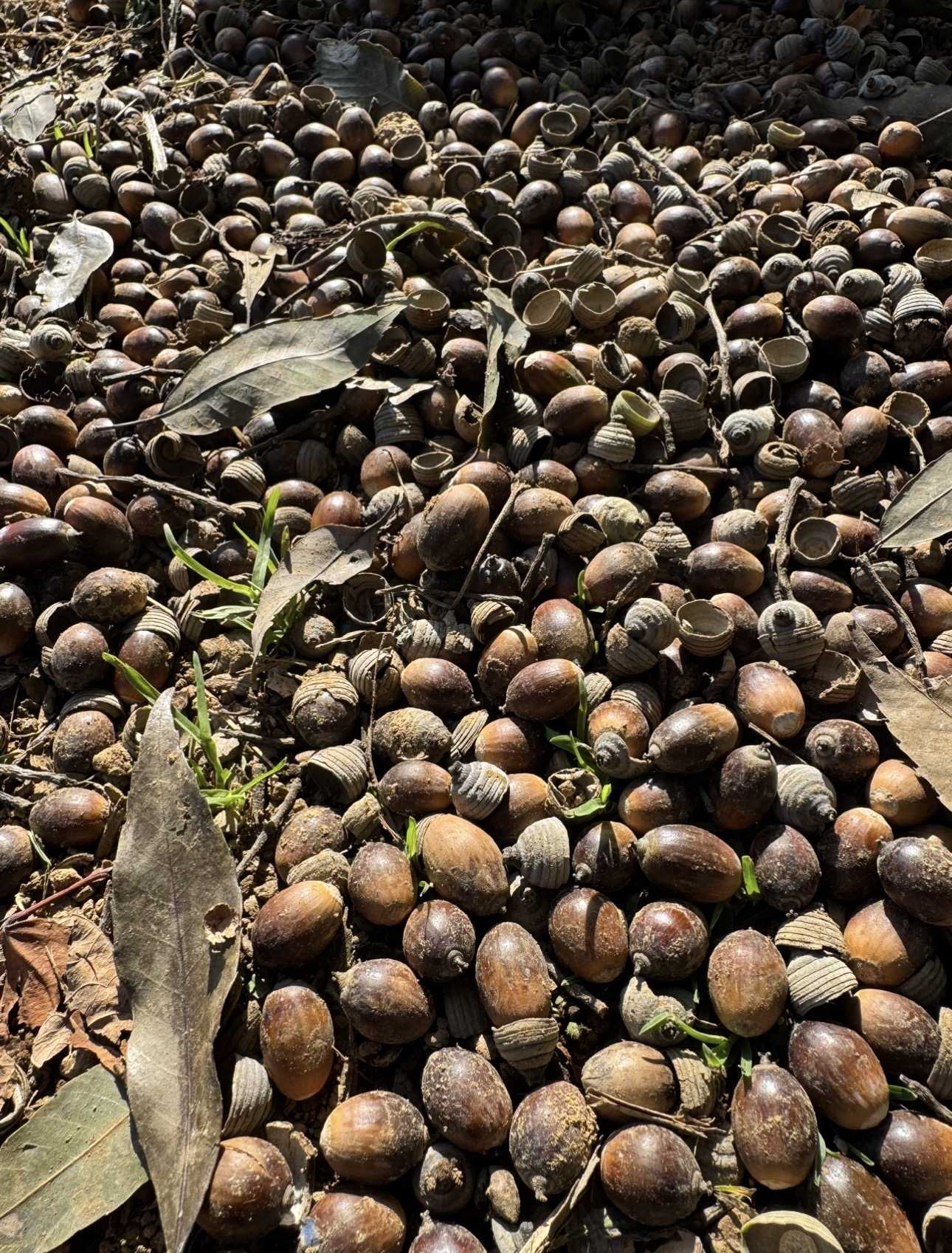 蜘蛛の糸にぶら下がっていた、どんぐりの実と帽子