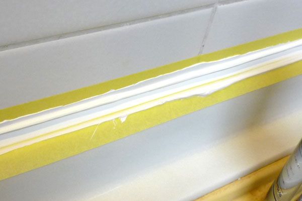 コーキングヘラをあてて、ヘラが接しているところがマスキングテープの端になる位置に目星をつけます。