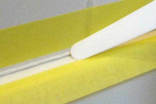 マスキングテープを貼ったら、ヘラを当てて確認します。