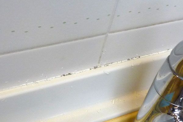 流しのコーキングを打ち替えました。17年も過ぎると、カビが取れなくなって写真の様になります。