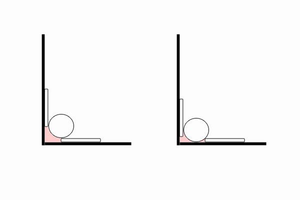理想的には、左の図のようになるようマスキングテープを貼ります。右の図は、コーキングにバリができたり、二重になります。