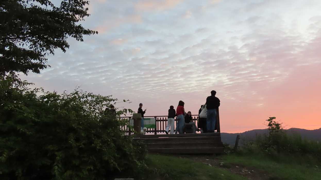 日の出を見に若者が十数人いました。