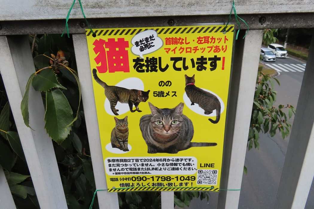 散歩中に見覚えのある猫ちゃん探しのポスター見つけました~。前はこことは2キロ以上離れた遊歩道で見つけたのですが・・これは新しいポスターです。このことをアップしたことがあるので探してみたらそう~そうです昨年の6月3日脱走したんでした。もうすぐ1年半です。2年たつと一般的に猫は飼い主さんのこと忘れてしまうといわれているんですよね~。(まだ覚えていて会いたいと思っているのかな~)私は猫ちゃん飼ったことがないのですが気になって調べてみたら2022年6月からマイクロチップは義務化されて15桁の固有番号が記録されデータベースに登録されているそうですが専用のリーダーで読まない限り解らないわけだし迷子の猫ちゃんをそのまま飼われていたら帰って来られないですものね。(飼い猫ですし一匹で生きているとは思えないですので・・)1年半でもう無理かな~と思う気持ちがあってもそれでもあきらめられない飼い主さんのお気持ちお察しします。