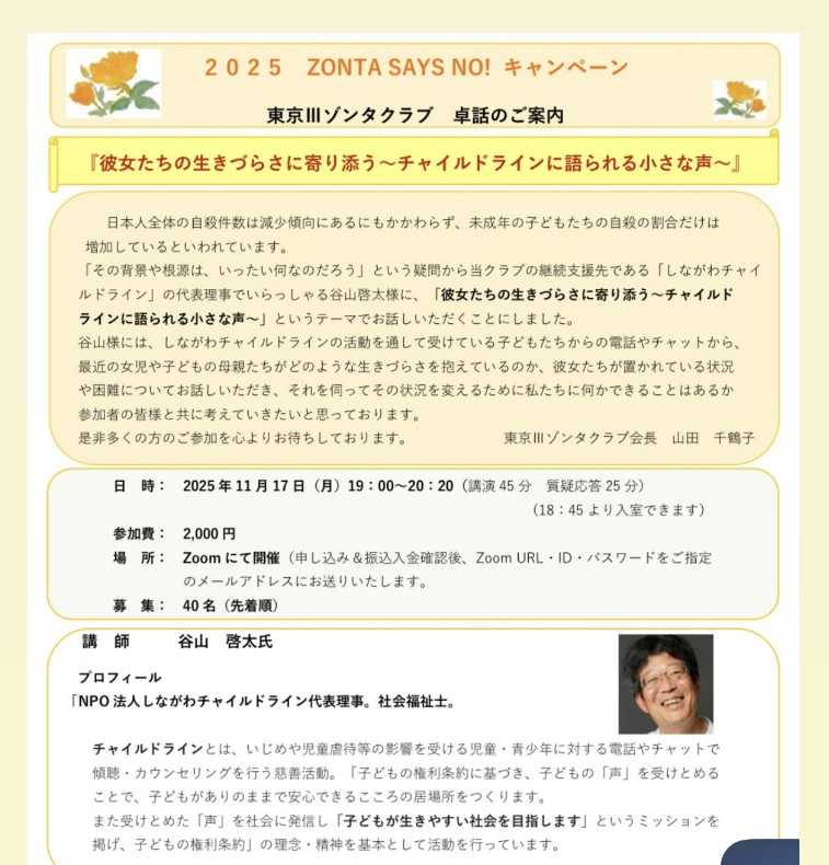 私が所属している国際的なボランティア団体『東京3ゾンタクラブ』のブログは以下をご覧頂ければ幸いです。ブログを担当しています。