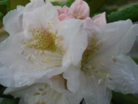 今朝の庭  石楠花(しゃくなげ) 我が家の3本の中で、1番遅い目覚め