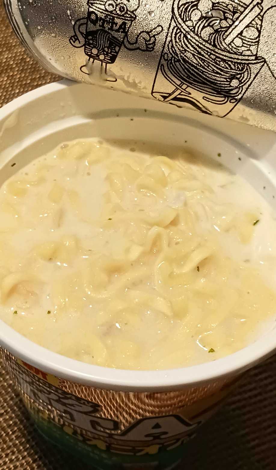 お湯を注ぐと…デカめのじゃが芋が見えます!