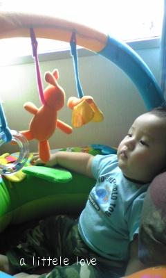 今日のぽかぽか陽気は有難かったぁ久しぶりにベビーカーで買い物へ出かけられましたチビは 買い物している途中 ベビーカーの動きが止まると すぐに泣いたりぐずったりするから 先に公園までブラブラと 眠くなるまでお散歩して 寝ている間にサクッとお買い物して来ましたそろそろ3ヶ月になる息子の体重は 多分8キロぐらいありそうです大きいし重たいけれど 成長も早い早い首が据わったので あれこれ見えるのが面白いらしくキョロキョロとあちこち見回したり 私の動く方へ首もちゃんとついてくる ベッドの上のくるくる周るメリーの人形を 必死に手でつかもうとしてると体が勢いで傾いて 今にも寝返り出来ちゃいそうで怖いっす