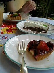 先日友人とキルフェボンにてお茶会を催しました☆美味しそうなタルトを目の前に欲張って1人1.5個食べようと2人で3つのタルトを注文。しかしお昼ご飯もしっかり食べた後だったので結局全部食べきれずでした女子失格です!くやしい。。ちなみに私はチョコ&バナナのタルト、友人はチーズのタルト。半分こしたのは秋限定さつまいものタルトです。どれも美味しかった♪次は絶対全部食べるぞー!ちなみに写真を撮り忘れた!と思ったら既に食べ散らかした後でした…今日の画像は前回行ったときのものです。。この時も1.5個してますね(笑)