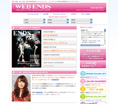 毎週水曜日はウェブエンズ更新の日!!!本日の更新情報・「パッション駅前店」のSalon's Room Check!・2009 WINTER STYLE「INSIDE VILLAGE TRUTH」「feel.a 南吉成」「Marzzy Style」「Marmalade Skies」今春ウェブエンズを大リニューアル致します!乞うご期待ですぞ最新のサロン情報はWEB ENDSでチェックだっ!