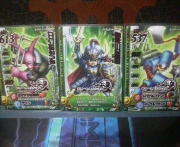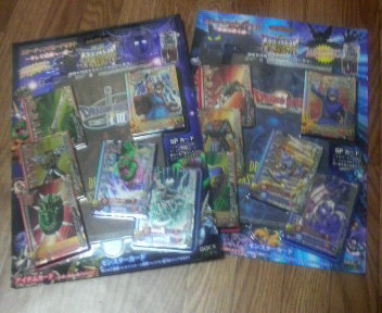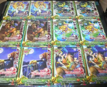 こんばんは~、ばっちょです。 まずはコレ スターティングカードセット『そして伝説へ・・・編』実はばっちょ発売日に買い損ねて、色々とお店を聞き回ったのだけれどどこも売り切れ状態だったんですけど、ママさんがたまたまヨーカドーに買い物へ玩具売り場を見たら『悪霊の神々』しかなかったみたい・・・でも本人はばっちょが欲しがっていたものかどうか分からず、悩んでたところ、店員さんがもう1種類のカードセットを売り場へママさんは迷わず2種類買ってきたというわけですということで、やっと『そして伝説へ・・・編』GETでした さて、今日は大人大会だったんです非公式だけどね そして集まった変○さん達~ 総勢12名でも大会はシングル戦じゃなくペア戦とのことクジでペアの組み合わせが決められました。チームは6組しか作れないので、2チームがシードというかたちに そして、ばっちょとペアを組んだのはミントさん相手はというと・・・るいぱぱさん&ナンシーさんペア デッキはというと、上:るいぱぱさん&ナンシーさんペア下:ミントさん&ばっちょペアバトマス(グレートアックス)、スライム、炎の戦士魔法使い(りりょくの杖)、ナイトリッチ、デンタザウルス VS勇者(天帝の剣)、ナイトリッチ、リザードマン魔法使い(りりょくの杖)、デンタザウルス、ギズモ るいぱぱさんがいきなりアクシデント間違って青ボタンを押して、モリレンチームになったみたいでもこれが運命の分かれ目1ターン目、相手がいてつくはどうこちらがメダパニーマ・・・でも全ミス結局2ターン目につばぜりを仕掛けられて負け~3ターン目、お相手がドラゴンオーブで守りにこちらはロトの紋章で対抗4ターン目、お互いHPが1500くらいこちらが順調に相手のHPを削っていき、最後のモンスターの攻撃何と・・・お相手のHPが「1」残っちゃった・・・結局とどめの一撃で負けちゃいました~ 優勝はそのままの勢いでるいぱぱさん&ナンシーさんペアが優勝でしたおめでとうございました!!普段の大会では見慣れないペアやデッキもあって、短い時間でしたが、かなり濃い時間を過ごすことが出来ましたとりあえず、代表勇者決定戦前に良い経験が出来ましたよ代表勇者大会で誰かこの中から抽選突破して欲しいですね 明日は息子の最終調整かな ではっ