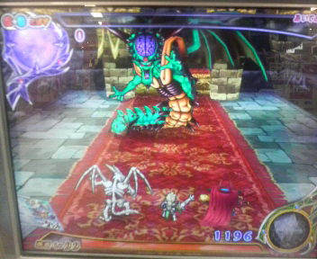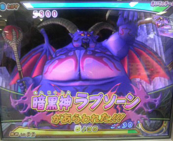 こんばんは~、ばっちょです。 ついに『怒れる大地』、稼動しましたね~!!ばっちょも仕事帰りにサクッと行ってきましたよ 今日の目標は取りあえず暗黒神ラプソーンを討伐すること ・・・で、いきなり1クレ目で出ちゃったヨ 暗黒神ラプソーン!既に5回討伐されてるし・・・ 1ターン目:ラプソーンがドルモーア こちらは通常攻撃2ターン目:つばぜりを仕掛け勝利3ターン目:ラプソーンがメラゾーマ こちらは通常攻撃4ターン目:ラプソーンがあんこくのたましい SPドラゴンオーブを使用 そのままオーブが満タンに5ターン目:とどめの一撃発動 初討伐~!!デッキ:勇者(天帝の剣)、ナイトリッチ、ドラゴンゾンビ その後にも白目オルゴ・デミーラを息子の書とばっちょの書にそれぞれ1体ずつ討伐刻みました ばっちょの書この画面の感じだとあと2体は入りそうですね~ 賢者の融合武器てんばつの杖 + さばきの杖 青賢者の杖赤技:デギマ 雷と風の属性青技:雷鳴の杖 雷属性の攻撃雷鳴の杖の追加効果は確認出来ませんでした ではっ